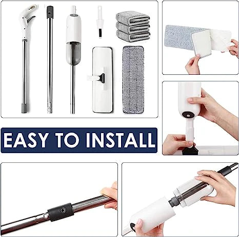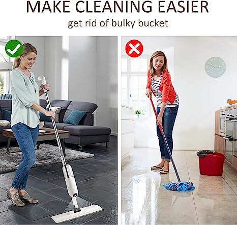 ✨AHORRA TIEMPO Y ESFUERZO - 450 ml botella de spray de gran capacidad, presione el botón para rociar el líquido necesario para limpiar el piso sin mojarse demasiado. Ahorre tiempo innecesario y exceso de agua. El cabezal giratorio de 360 ° lo ayuda a limpiar las esquinas difíciles de alcanzar de su hogar de manera fácil y rápida. Traerte un ambiente limpio.