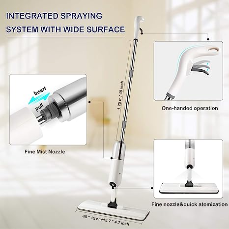 ✨DISEÑO ERGONÒMICO - el control ergonómico del mango, la longitud del poste de 1,25 M y el cabezal giratorio de la fregona 40 cm le permiten limpiar sin doblarse ni agacharse. El diseño del aerosol hará que la limpieza del piso sea fácil y simple.