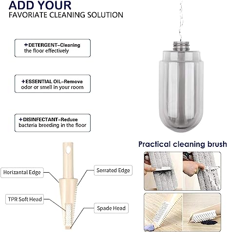 ✨BOTELLA RECARGABLE - La botella de la mopa le permite elegir la mejor solución de limpieza de acuerdo con sus necesidades. Puede usar solo agua o mezclar 2 cucharaditas de solución limpiadora con agua para limpiar el piso. La almohadilla de microfibra se adapta a todo tipo de suelos, como madera dura, madera laminada, baldosas de cerámica, etc.