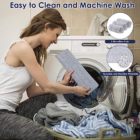 ✨ALMOHADILLAS DE MICROFIBRA LAVABLES - La mopa viene con dos almohadillas adicionales para que puedas reemplazar. el cabezal de la mopa tiene millones de fibras finas, puede absorber la suciedad, el polvo, el cabello y la humedad y penetran profundamente en las grietas para recoger más suciedad que los desechables planos.